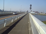 馬入橋 橋の手前で平塚市に入り昭和55年竣工の約500mの長い橋を渡る。前方が高麗山、右正面に富士山、右側に大山を含む丹沢山系、左側に相模湾の河口が見える。江戸時代には橋はなく渡し船で渡っていた。下を流れる相模川は馬入川とも呼ばれ源頼朝の馬が川の中に飛び込んで水死したしたという故事が由来。旧相模川橋脚の出現で相模川は頼朝の時代には小出川のあたりを流れていたとされる。 |