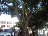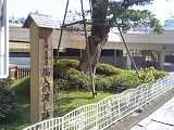 {右・寄}平塚小学校跡のクスノキ 見附町30-2 市民センターの先にあるの見附台緑地の大木。明治7年(1874)海宝寺(幸町26-21)に崇善館第一支校(現在の港小学校)薬師院(平塚3-14-18)に崇善館第二支校が設置され平塚の小学校教育が始まる。第二支校は明治13年(1880)この地に移転し平塚小学校(現在は崇善小学校)となった。クスノキは日清戦争講和記念に中野健明県知事より各学校に配布された種子が発芽したもので観察対象だったためか明治28年(1895)年3月28日に種を蒔き6月15日に双葉が出たという正確な記録が残っている。幹周囲5.4m主幹3.6m高さ13m。隣接する崇善公民館は昭和25年建築の市議事堂で左の事務所棟は戦前に海軍が建て戦後は小学校の理科室に利用されていた。現在小学校は浅間町4-3に移転している。 |
