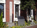 {左・寄}お菊塚 平塚駅前交差点から三つ目の信号を左に入り長崎屋の先を右折、すぐ左折すると右側の紅谷町公園内にある。怪談「番町皿屋敷」のモデルとなったお菊は平塚宿の役人真壁源右衛門の娘で江戸の旗本青山主膳に奉公していた元文5年(1740)24歳の時に求愛を断られた家来の逆恨みで家宝の皿の紛失の疑いをかけられ殺されてしまう。馬入の渡しで遺体を引き渡された父は「あるほどの花投げ入れよすみれ草」と詠みこの地にあった真壁家菩提の晴雲寺に埋葬したが刑死人の例にならい墓標は建てず栴檀の木だけを植えた。戦災で一帯が焼失した後の区画整理で晴雲寺は立野町6-5に移転しお菊の遺骨も掘り起こされ真壁家墓地に納められている。この地には昭和27年(1952)に碑が建てられた。 |