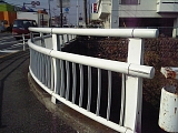 {右}酒匂川の渡し碑 さらに鬼柳配水路にかかる橋も渡ると酒匂川に出る。旧東海道はここから上流側に分岐するため右折して50mほど行くと鮨政の前の植込みに碑がある。江戸時代はここから対岸へ渡っていた。河川敷幅は5町20間(約580m)あり延宝2年(1674)江戸防衛の名目で船渡しが禁止されて以降明治4年(1871)まで人足による肩車または輦台渡しが行われた。また10月から3月の冬季渇水期には仮土橋も架けられていた。現在は国道1号が通る昭和48年築の酒匂橋で川を渡るしかない。欄干には小田原宿にちなむ絵の銅版がある。橋を渡り終えた所には河原に出る道がないのでそのままトヨタカローラを過ぎ細道を右折し戻ると対岸の渡し場付近の河岸に出る。 |