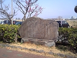 {右}二宮金次郎顕彰碑 酒匂川の小田原側の土手にある石碑で昭和63年建立。金次郎は天明7年(1787)酒匂川の右岸の農村・栢山の裕福な農家に生まれたが川の氾濫などで家は没落、父母も相次いで亡くし親戚に預けられた。苦労の末24歳でもとの家を再興し26歳のとき藩家老・服部家の財政建直しを頼まれ5年で成功、文政元年(1818)小田原藩主大久保忠真が京都所司代から老中となり江戸に向かう途中、領内の他の働き者12人とともに32歳の金次郎を表彰した場所がこの辺りといわれる。このあと文政5年(1822)には武士の位を授けられ二宮尊徳となり小田原藩の飛び領地・桜町(栃木県二宮町)の財政再建を任され小田原を離れたが後に幕臣に取り立てられるなどして70歳で没するまでに全国615の村々を建直した。 |