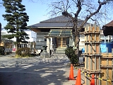 {右・寄}龍殊山 徳常院 [曹洞宗] 本町3-13-11 本町交差点から30mほどの道を左折し100mほど行くと右にある。本堂右の別棟二階に片足を下げる延命地蔵尊とも呼ばれる露座の大仏がある。総身5mの青銅製で正徳3年(1713)神田の鋳物師が作り箱根芦ノ湖畔の賽の河原に安置されていたが明治2年の廃仏稀釈のあと東京の古物商に売り渡され運搬途中この地で動かなくなり像に触れると発熱する者が続出したため徳常院の世話人たちや町の有志が65両で商人から買い戻し寺に安置した。火あぶりとなった八百屋お七の恋人で吉祥寺の小姓吉三郎がお七を弔うために作ったという伝説もあり別名吉三地蔵とも言う。門を入って右に稲荷社がある。 |