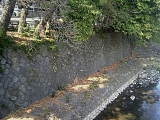 {右}篠曲輪跡(ささくるわあと) 山王川に架かる山王橋を渡るとある川岸の石垣。北条氏時代の小田原は東西を酒匂川、早川に挟まれ南は海、北は箱根山という好立地に加え内郭(本丸・二の丸・三の丸)の周りに町全体を周囲約9Kmで囲む外郭があり全国屈指の規模を誇った。曲輪と呼ばれる石垣や堀が何重にもある防御構造は永禄年間(1558-69)ごろから構築が始まり上杉謙信、武田信玄に攻撃された経験も活かし強化され五代氏直の時、秀吉の攻撃がはじまる直前に完了した。ここもその曲輪一つで天正18年(1590)秀吉の小田原城攻めで一番戦闘の激しかった場所と伝わる。山王川は江戸時代は芦子川と呼び山王橋は長18間幅3間の板橋で河原には刑場があった。 |