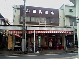 {左}盛月堂総本舗 本町3-12-22 明治17年(1884)創業の和菓子店。小田原の名産である梅を使った和菓子が多く求肥でくるんだ餡を梅酢に漬けたしその葉でさらに包んだ甘ずっぱい甘露梅(12個840円)や梅ようかん(450円〜)や青梅の甘露煮を使った梅しずか(180円)などがある。他に栗が1個入った栗最中や栗大福(各120円)二の丸最中(160円)も好評。営業時間10時-18時。このあたりから御幸の浜交差点手前にかけてが久保田甚四郎本陣があった場所で紀伊徳川、筑前黒田、長門毛利、阿波蜂須賀、佐賀鍋島、福井松平、久留米有馬などの大名が宿泊した。交差点渡ったあたりには小田原宿に2軒あった問屋場の一つ「上の問屋場」があり下の問屋場と10日交替で業務を行っていた。問屋場向かいには虎屋三四郎脇本陣があった。 |