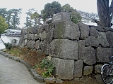 {右・寄}箱根口門跡 箱根口交差点を右折し少し行った右にある枡形門石垣の一部でさらに先左の小田原スポーツ会館前に箱根口周辺遺構の説明板がある。小田原城三の丸の南側入口だった箱根口の周辺は延宝年間(1673-80)に大改修が行われている。右手の三の丸小学校は文政5年(1822)城主大久保忠真が創設した藩校集成館の跡で日新館、幸学校、啓蒙学校など名を変え本町小、城内小となり平成4年に2校が統合し三の丸小となった。その先は城趾公園の入口で左には御感の藤と呼ばれるかながわ名木100選の藤棚がある。樹齢200年で最初は藩主愛玩の鉢植えだったが明治の末には唐人町の民家にあって御用邸に向かう当時皇太子だった大正天皇が感嘆し名物となり大正11年(1922)ここに移植した。 |