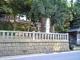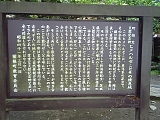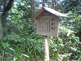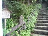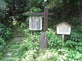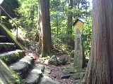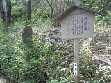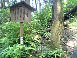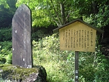 {右}親鸞上人御聖蹟 追込坂標石から探勝歩道を挟んで隣に説明板と句碑がありその横の少し奥に大きな石碑がある。このあたりを笈ノ平(おいのだいら)と言い文暦元年(1234)親鸞上人が東国の教化を終え真楽寺から4人の弟子と京都に向かう時に上人はここで背負っていた笈を一旦降ろし弟子の性信房と蓮位房に向かい東国の門徒を導くため戻ってもらいたいと伝え別れた場所と伝わる。句は上人が別れ際に詠んだもので「やむ子をばあづけてかえる旅の空 こころはここに残しこそすれ」とあり震災で崩壊した道路復旧記念に昭和2年(1927)建てられた。石碑は大正10年(1921)のもの。石碑の横には休憩所(四阿)もある。 |