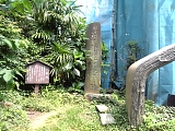 {右・寄}ヒメハルゼミ 案内板 早雲寺の山門と中門の間の道にある。町指定の天然記念物に指定されているセミで国内分布の北限、神奈川県では唯一の棲息場所が早雲寺と裏の早雲公園一帯となっている。この地で発見したのは昭和22年以降湯本に住んでいた歌人並木秋人で功績を称え昭和48年早雲寺境内に歌碑「あかときと 啼くひくらしに さきかけて 天に流らう 勤行蝉のこゑ」が建てられた。一匹が鳴き出すと群全体が揃って鳴くことから別名勤行蝉(御経蝉)とも呼ばれる。早雲公園はあずまやなどが整備された散策路があり松やスダジイ、タブノキ林は蝉保護の目的もあり県指定天然記念物となっており蝉に関する別の案内板もある。 |