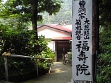 {右}大慈悲山 福寿院 (箱根観音) [曹洞宗] 湯本茶屋182 石畳が終わる直前にある。昭和51年に開山し本尊は544年に中国から渡来したと言われる石造の出世慈母観音菩薩像で他に媽祖菩薩、清滝浄行観世音も祀る。江戸初期に山賊に襲われ身ぐるみ剥がされて谷底に落とされた旅人が観音菩薩を信仰していたおかげで途中の木にひっかかって助かりその時に霊泉も発見した由緒ある地で旅人はこの地を観音沢と名付け小庵を結び観音菩薩像を安置し後に観音沢上人と呼ばれた。霊泉は旅人の間で有名になり箱根随一の名湯「長命美人の湯」とまで言われた。本堂右には大理白光菩薩、本堂から少し石段を降りたところに跨ぎ撫で観音もある。