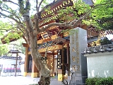 {右}早雲寺 山門 白山神社隣のホテル花紋の向かいに山門がある。早雲寺は大永元年(1521)父早雲の遺言により北条二代城主氏綱が開基、大徳寺83世以天宗清が開山した。北条氏の菩提寺として七堂伽藍を備え栄えたが天正18年(1590)秀吉が小田原攻めで仮本陣にし後に石垣山一夜城に移る際に火を放ったため全焼、寛永4年(1627)17世菊径宗存が再興した。山門は再興の頃のもので掲げられている金湯山の扁額は寛永20年(1643)朝鮮通信使の写字官として来日した雪峰(金義信)の揮毫による。本尊は室町時代作の釈迦三尊仏。境内奥に北条氏5代の墓があり再興後に分家の狭山北条氏の5代氏治により寛文12年(1672)再建された。右から早雲、氏綱、氏康、氏政、氏直の順。 |