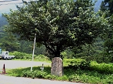 {右}白川洗石生家跡・湯元茶屋一里塚跡(22) 福寿荘向かいに生家跡の説明碑と一里塚跡の石碑と説明板がある。明治4年(1871)この地にあった家で生まれた白川洗石(鶴之助)は箱根細工の指物職人の父・三代吉について技法を学んでいたが明治22年(1889)当時ドイツから輸入されはじめた裁縫用のミシンに糸鋸をとりつけた装置で原木を加工し機械による木象嵌を確立し先駆者として全国的に指導し普及に貢献した。一里塚は本来は60mほど先にあり幕末の頃は高さ5尺、双方に幹周り6尺5寸の榎が植えられていた。石碑は昭和45年の建立。 |