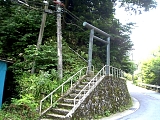 {左}駒形神社 須雲川105 左の文字だけの道祖神を過ぎると集落の案内板が左にあり須雲川集落に入る。しばらく進むと石段と鳥居がある。箱根の駒ヶ岳が神格化した山岳信仰が起源。大正15年(1926)の鳥居右に明治15年(1882)金毘羅講の八角石柱があり鳥居入って右に文政2年(1819)木食観正碑がある。石段途中右に五輪塔、三猿の庚申塔、宝暦2年(1752)享和2年(1802)の文字庚申塔2基が並ぶ。江戸時代には神社向かいに高札場があった。鳥居付近から対岸の山肌に普段は涸れている滝が見え江戸に向かう人にとっては水が見えると酒匂川が氾濫している目安になった。須雲川村は寛永11年(1634)に作られ幕末には2軒の立場を含む30軒ほどがあり農業の傍ら挽物細工やわらじなどの道中用品を商っていた。 |