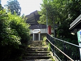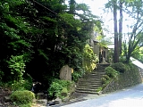 {右}辻村伊助邸の跡 急坂を登り湯本幼稚園の入口横に説明碑がある。大正2年(1913)園芸の研究とヨーロッパアルプスの登山のため渡欧し翌年日本人として初めて冬季アルプス踏破に成功した辻村伊助の邸宅があった場所。滞在中雪崩れに遭い知り合った看護婦ローザ・カレンと結婚し帰国、兄常助と農園(現辻村植物公園:小田原市荻窪4381)経営の傍ら大正10年(1921)高山植物の研究のため邸宅向かいに辻村高山園を開いていたが大正12年(1923)関東大震災の土砂崩れで妻子、女中、愛犬とともに埋没した。「スウィス日記」「ハイランド」「登山の朝」 など山岳文学も多く発表した。 |