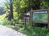 {左}箱根八里記念碑 少し行くと旧道から左へ分岐する砂利道があり少し入った左にある。「巴里に死す」「人間の運命」などの沼津出身の小説家・芹沢光治良が揮毫した「箱根路や 往時をもとめ 登りしに 未来の展けて たのしかりけり」が刻まれている。昭和60年(1985)三島青年会議所歴史史跡特別委員会が現代一流の文化人8人に揮毫してもらい箱根八里の要所に設置したものの1つで他に見晴し茶屋(小沢征爾)興福院(澤田政廣)茨ヶ平(井上靖)施行平(東山魁夷)山中城(司馬遼太郎)笹原一里塚(大岡信)錦田一里塚(鈴木宗忠)がある。旧道から外れそのまま砂利道を行くと畑宿清流マス釣場を併設する弁天山清流公園がある。 |