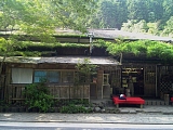 {右}甘酒茶屋 畑宿395-1 資料館の隣。江戸時代初期から続く茶店で当時から代々受け継いできた麹を使った甘酒が飲める。今は酒粕に砂糖を加えて水でのばす甘酒が一般的だがここでは昔どおり麹の発酵のみで甘みを出している。江戸期には甘酒を出す茶屋が箱根八里間で13軒ありこの付近にも4軒あったが残るのはここのみ。昔は道の左にあり昭和5年(1930)豆相地震で倒壊し現地に移転した。昭和48年にはハイカーのタバコのポイ捨てで全焼し現在の建物は同じ間取で再建したもの。甘酒400円力餅(あべ川・いそべ)各450円など。7:00-17:30日曜休。資料館との間に明治2年(1869)に明治天皇が休息した記念の御駐蹕之蹟碑や大正8年(1919)建立の甘酒茶屋の説明石碑などがある。 |