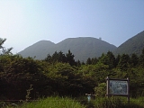 {右・寄}箱根の森 展望広場 すぐ右に分岐があり旧街道からそれて脇道に入ると箱根の森展望広場がありベンチや箱根の森の案内図がある。箱根町が昭和61年町制30周年記念に整備しお玉ヶ池を中心に広がる箱根の森の一部。広場からは目の前に二子山が四ツ子のように見える。左が上二子山(1090m)右が下二子山(1064m)で駒ヶ岳、神山、台ヶ岳などとともに箱根の中央火口丘の一つで火山活動の最後に出来た。頂上付近には富士火山帯特有のハコネコメツツジを始めサンショウイバラやコイワザクラ、ヒメイワカガミなどが生え現在は保護のため有刺鉄線が張られ入山禁止。上二子山のレーダーは富士山気象観測所から移設されたもの。左には駒ヶ岳(1357m)が見え広大な芝生がある頂上まではロープウェイで登る事が出来る。 |