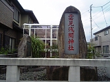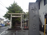 {右}雲見浅間神社 少し行くとある。祭神は磐長姫之尊。瓊瓊杵尊に嫁入りした磐長姫之尊と木花開耶姫之尊の姉妹のうち姉である磐長姫之尊だけ別居することになり雲見(伊豆)に向かう途中にここに宿泊したと伝わる。後に木花開耶姫之尊と瓊瓊杵尊は富士山の浅間神社(富士宮市宮町1-1)に祀られ磐長姫之尊は雲見の浅間神社(賀茂郡松崎町雲見386-1)に祀られている。この地には長く民家に祀られていた稲荷の小祠があり昭和50年に雲見から勧請し雲見浅間神社となった。社殿は透明なガラス張りのガレージに覆われた下にある。 |