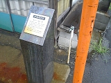 {左}高嶋酒造(富士山の霊水) 原354-1 原駅入口信号からしばらく行くとある。文化元年(1804)創業の老舗の酒造で明治17年に山岡鉄舟が命名した白隠正宗を醸造している。街道沿いのナマコ壁の前に「富士山の霊水」説明板と蛇口があり通行人や近隣の人が飲んだり汲んで持ち帰ったりできるようにしてある。地下14.5mの自噴井戸にから湧き出る富士山からの水でアンモニア性N(-)亜硝酸N(-)鉄分0.005PPM。蛇口のある建物の隣の古い建物の前には小さな馬頭観音もある。