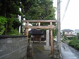 {右}高木神社 大塚326 少し行くとオートガーデン手前にある。昭和42年石鳥居をくぐって右に風化した伊豆型道祖神(塞神)がある。境内右の欅の横に大正期の耕地整理を記念し昭和16年建立された碑がある。他に小祠や宝暦9年(1759)灯籠がある。狛犬は昭和50年。社殿右に大塚本田区公会堂、社殿裏にすべり台がある。 |