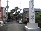 {左}海岸山 大通寺 [曹洞宗] 一本松62 しばらく歩いていくとある。江戸初期に紹外舜隆が開山し本尊は南無釈迦尼佛。火災、津波、大風などの天災で文書や資料が消失しており現在の本堂は平成7年築。幕末に徳川の藩士が寺小屋を開き明治6年(1873)初学舎となり現在の原小学校(原1200)の基となった。スルガ銀行の創設者で沼津市名誉市民である岡野喜太郎もここで学び山門前左にはそれを示した昭和50年建立の碑もある。境内右に忠霊塔、おそうじ小僧、鐘楼。左に羅漢像、釈尊三尊佛、六地蔵など。 |