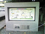 {右}高札場跡 浅間神社の左前に夢舞台道標原宿と富士急バスのバス停「原警察前」がありその奥に金属の説明プレートが貼られた碑がある。江戸時代には高札場が神社前にあり高さ1丈(3m)幅2間5尺(5.2m)奥行1間(1.8m)だった。説明プレートが貼られている碑の上部は「原宿と浮島マップ」という周辺のイラストマップになっている。 |