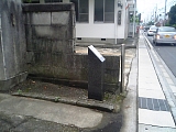 {左}渡辺本陣跡 原198 問屋場の西数10mに黒石柱がある。渡邉平左衛門本陣のあった場所で後に玄関と茶室が松蔭寺に移築されたが現存せず懸魚のみ沼津市歴史民俗資料館(下香貫島郷2802-1)に保管されている。原宿には他に東町の松蔭寺向かいに高田脇本陣があったが天保9年(1838)の火災で焼失後再建されなかった。 |