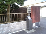 {右}鈴木和太郎銅像 桃里中町バス停の先にある胸像。明治27年(1894)生まれで第一次大戦後、茄子、西瓜、白桃など野菜、果樹の栽培をこの地で始めた人物。農産物は後に全国的に有名になったため助兵衛新田の地名改称の際に新地名「桃里」の由来にもなった。銅像の下には新聞紙面をデザインした石版もあり日本経済新聞を愛読していたことから経済にも通じ株式運用により鈴和観光(日乃出町38)設立のための財も成した。昭和57年没。隣には一等水準点もある。次のバス停桃里の先左には桜地蔵尊の案内矢印があるが左折していくと堂は踏切のない線路の向こうにある。 |