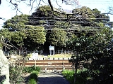 {左・寄}鵠林山 松蔭寺 [臨済宗白隠派] 原128 しばらく行くと石柱があり左折し正面。弘安2年(1279)天祥和尚が鎌倉円覚寺の末寺として開山し慶安年間(1648年頃)に清見寺大瑞和尚が再興して妙心寺派となった。宝永4年(1707)富士山の大噴火で大破し享保2年(1717)白隠禅師が住職となり再建した。境内左奥の墓地内に県指定史跡になっている白隠の墓がある。その奥の松の木の根元には説明板もある。山門は108枚の石瓦で葺かれ白隠の設計によるもの。他にも境内左には四国88箇所霊場の石仏群や鐘楼、門を入って右に五社大社もある。本堂左には享保18年(1733)題目碑もある。白隠に関する書画・文物を収蔵した宝物館があり毎年4月29日に一般公開される。 |