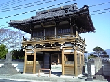{右・寄}蓬莱山 祥雲寺[臨済宗妙心寺派]今沢307 昭和62年国鉄民営化の10日前に開業した片浜駅へ通じる片浜駅入口交差点を過ぎ今沢に入ってしばらく行くと入口がある。永禄元年(1558)久松和泉守が菩提寺として建立し鎌倉建長寺より秀江禅師が迎えられ開山した。本尊は釈迦牟尼如来。久松和泉守は菅原道真の末裔の家系で境内入ってすぐ左には天神社もある。薬師堂には承和3年(836)慈覚大師作の薬師如来を安置しておりもとは永延2年(989)源心僧都が創建した巨海寺の本尊だったが兵火で焼失し本像だけ逃れて今沢薬師として近在の人々に祀られていたものが移された。境内右には明治8年の六字名号碑や元禄や寛延などの石塔、石仏群がある。左には忠霊碑や平成18年建立の清浄行菩薩がある。 |
