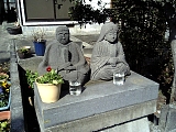 {左}白隠禅師誕生地の石碑 西念寺入口すぐ先のセブンイレブンの手前に碑と黒石柱がある。手前の民家の庭には白隠禅師生湯井戸もある。貞享2年(1685)この地で旅籠沢瀉屋を営む長沢家の3男として生まれ幼名を岩次郎といい6才のときには法華経の講義を覚え人々に語って聞かせた。15才松蔭寺で出家し慧鶴(えかく)と名乗り19才で美濃、四国、京都など行脚の旅に出た。後に京都妙心寺の第一座となり500年に一人の名僧とか妙心寺派中興の祖と言われた。享保2年(1717)松蔭寺の住持となり翌年から白隠と号し明和5年(1768)84才で入寂、御桜町天皇より神機独妙禅師、明治天皇より正宗国師の諡号を贈られた。禅画にも堪能で釈迦、達磨、観音などを好んで描き丹田呼吸法を会得し予防医学も実践した。 |