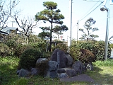 {左}沼田新田一里塚跡(33) 少し先の柏原保育園入口を過ぎたところに東海道400年祭にあわせて整備された平成13年の碑や庭石、木などがある。 |