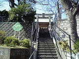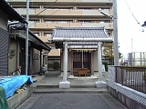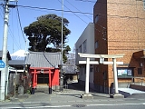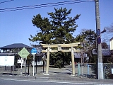 {右}愛鷹神社(あしたか) 檜新田161 桧町歩道橋をくぐってすぐ。境内右には単体浮彫道祖神、灯籠1基、小祠、ブランコ、鉄棒がある。社殿前の灯籠は昭和40年。社殿後ろの両側にも小祠がある。境内のエノキ、クスノキ、クロガネモチが富士市の保存樹林になっている。檜新田の鎮守で檜新田は江戸時代初期に船津新田を開発した三井氏の一族10人程が移住してきたのが始まり。天明年間(1781-89)の村高は18石余で家数は12軒人口は53人。この付近一帯は三新田遺跡と呼ばれる平安時代の集落跡で昭和56年(1981)富士市が学術調査し多くの住居跡を発見したが現在は埋め戻されている。このあたりにあったとされる柏原宿跡とも推定される。 |