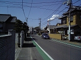 {左}名勝 左富士 左の金子商会手前に庚申塔の祠がありすぐ先の交差点手前で左前方の日清紡富士工場(依田橋町7-34)の後に富士山が見える。東海道の左側に富士山が見える有名な左富士で他には茅ヶ崎の南湖の左富士がある。交差点を渡ると左に左富士ポケットパークがあり説明板、松が2本(1本は江戸のもの)、夢舞台道標左富士がある。広重はこの左富士を吉原宿として描きその浮世絵が大きく彫られた平成15年建立の碑もある。広重の道中日記には「左富士京師より下れば右に見え江戸よりすれば反対の方に見ゆ。一町ばかりの間の松の並木を透して見るまことに絶妙の風景なり。」と記されている。このあとバス停左富士を過ぎたところにも平成4年日清紡富士工場が建てた左富士の白い角柱がある。 |