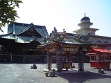 {左}香具山 妙法寺 [日蓮宗]今井2-7-1 しばらく行くと立場旅館の向かいにある。田子の浦に漂着した聖徳太子作の木造毘沙門天像を祀り富士登山前に水垢離をする修験者道場だった堂が起源で寛永4年(1627)日深が寺を創建し元禄の頃に隠居した久遠寺31世一圓院日脱が中興開山した。石段上左に銭洗い池、右にお身拭い毘沙門天、境内には極彩色の中国様式香炉場を始めインド、チベット、日本風の建物が混在し左奥の朱色の祠に毘沙門天の沓石という大石、その奥に洞窟七福神堂(拝観300円)がある。鳥居もあり階段横には大正13年(1924)の狛虎。鐘楼の鐘は昭和27年。2月の鈴川だるま市は高崎・少林寺、調布・深大寺と並び日本三大だるま市の一つ。明治7年(1874)元吉原小学校(今井3-4-2)の前身の香久舎が置かれた。 |