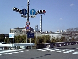 鉄道により分断される東海道 東海道線の線路に突き当たると道は線路沿いに左に曲がり吉原駅南口に向かうが本来の東海道は線路の向こう側の神山時計店のあたりに続く。線路を渡る手段がないため少し手前右の富士市の標柱がある二叉路まで戻り居酒屋の隠家万福(鈴川東町1-14)横を右折し鈴川踏切で東海道線を渡って迂回する。渡って日本製紙富士工場鈴川(今井4-1-1)の塀に沿って道なりに左へ曲がりしばらく行くと神山時計店前に出る。 |