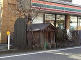 {左}馬頭観世音の祠 旧道は左にカーブして右富士に戻りしばらく行くと新橋バス停を過ぎたあたり左に依田橋郵便局とセブンイレブン富士市依田橋店がありその間の前に馬頭観音が安置された祠がある。祠の右には明治39年(1906)「馬頭観世音菩薩」と刻まれた碑、左には大正10年(1921)の題目碑もあり題目碑の碑面にも「馬頭観世音菩薩」「左富士」が刻まれている。 |