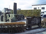 {左}増田平四郎翁碑 手前左に昭和37年建立の交通安全祈願の地蔵がある広沼橋で昭和放水路を渡ると左に富士市の標柱があり土手を左に入ったところに明治31年建立の碑、翁の石像、明治23年建立の女鹿塚新田の碑がある。昭和放水路は増田平四郎が明治2年(1869)に完成させ同年に高波で崩壊したスイホシと呼ばれる全長505m幅7mの大排水路の跡地を昭和18年(1943)に再掘削したもの。天保7年(1836)平四郎は浮島沼の干拓を計画し韮山代官所への工事許可を願い出ること12回、勘定奉行へ籠訴すること6度を経て発案から27年目の慶応元年(1867)に身延山久遠寺の資金援助を受け着工、女鹿塚新田開拓の基礎となった。平四郎の墓は妙泉寺(青野487)にあり宝物資料館に資料も保管されている。 |
