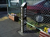 {右}東木戸跡 ジャトコ一地区工場(吉原宝町1-1)を過ぎた交差点を渡って真っ直ぐ行くと岳南商店街に入り少し先の東京電力駐車場前に富士市の標柱がある。富士市内には「見よう歩こう富士市の東海道」の統一標柱があり茶色の柱の側面に前後の観光ポイント、上部に地図がある。ここから吉原宿で西木戸までの長さは約11町(約1.2km)で奥行き平均30間(約54.6m)面積13町3反9畝(約13.3ha)の町が広がっていた。江戸時代付近には宿の米倉があった。街道沿いには寛政2年(1790)建立の一字一石経王塔もあったが現在は富士市立博物館屋外(広見公園)に移されている。 |