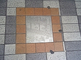 {左}野口祖右衛門脇本陣跡(現:ノグチカメラ)吉原2-11-4 天神社入口の少し先に歩道のタイルとしてプレートが埋められている。江戸時代は脇本陣だった野口家は現在はカメラ屋として続いている。吉原宿の本陣、脇本陣などは商店街の歩道に図画レリーフの金属プレートを埋め込んでその跡地を示している。 |