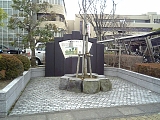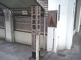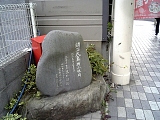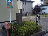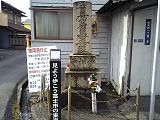 {左}間宿・本市場碑 本市場432-1 富士総合庁舎(本市場441-1)を過ぎ隣の富士フィランセの敷地に沿って歩いていくと小さなスペースに説明碑と榎があり「右かんばら宿」「左よしはら宿」の石柱がある。本市場は吉原宿と蒲原宿の間宿で多くの茶屋が立ち並び名物は白酒、葱雑炊、肥後ずいきだった。白酒は甘酒で山を流れる川の水も白く泡立っていることから山川志ろ酒と名付けられ広重の行書東海道では山川志ろ酒の看板をかかげる茶屋が描かれている。肥後ずいきは肥後が本場ではあったが原料の蓮芋が駿河産の方が良質と言う事で江戸後期には本場ものを凌ぐほど有名になった。間宿には通常旅籠はないが富士川が渡れない時もあったためここには旅籠屋が何軒かあった。説明碑には当時の住居地図や浮世絵も描かれている。 |