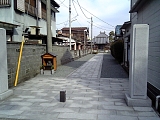 {左}長さん小路 (正式名:いかりや長介氏市民感謝状受賞記念通り) 少し先で左に分岐する小路。昭和19年(1944)に疎開後、工場の仲間とバンド活動を始め吉原のダンスホールで演奏するなどデビューまでの16年間を富士市で過ごし死後の平成16年富士市初の市民感謝状が贈られたこと記念し翌年の1周忌を機に命名された。入口の柱の名称板の題字は長男碇矢浩一氏の筆。すぐ先左に江戸時代のこの辺りの名物だった「山川志ろ酒」の復刻品を売るイチカワ酒店。その斜め向かいのパチンコ富士見会館吉原店(吉原2-5-2)前には上本陣と呼ばれた神尾六左衛門本陣(敷地630坪建坪204坪)跡、向かいの和菓子(栗饅頭)の南岳堂(吉原2-3-24)前には矢部清兵衛脇本陣(銭屋)跡の歩道プレートがある。 |