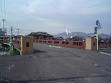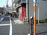 {右}西木戸跡 住宅地を抜け小潤井川にかかる昭和27年竣工の志けん橋の手前右の枡屋酒店(中央町3-8-11)に富士市の標柱がある。吉原宿の京側の入口となる。小潤井川は潤井川の支流で田子の浦港に注ぎ下流に少し行くと川沿いに桜が植えられ桜の名所になっている。橋を渡ると東海道(県道22号)は錦町北交差点で国道139号に合流する。反対側に渡りラーメンスポット天地人(永田町1-62)の駐車場を斜めに横切るように行くのが本来の東海道。 |