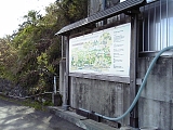 {右}西倉沢一里塚跡(40) 望嶽亭藤屋を過ぎた向かいに昭和62年の石柱と平成4年の説明板がある。薩埵峠の東登り口に位置し塚には榎が植えられていた。脇には昭和48年設置の薩埵峠の説明板もあり峠を登る時に自由に借りれる竹の杖が置いてある。ここから先は二叉路になっており右の登坂に少し入ると左に夢舞台道標由比町倉沢がある。薩埵峠越えにはルートが3つあるいは4つあったとされその記述は資料、看板等で違っている。二叉路を右に行き坂を登っていくのが現在旧東海道歩行のルート(遊歩道)として整備されているポピュラーなルートであるが二叉路を左に下りるのも安政元年(1854)地震で海岸が1.5m隆起して以降道路として利用されるようになったルートである。 |