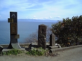 {左}大正天皇在東宮海水浴御成道 清見寺の総門の真向かいの交差点角に昭和5年(1930)建立の石柱がある。東海道線が静岡まで開通し興津駅ができた明治22年(1889)皇太子だった大正天皇が清見寺に約4週間滞在し海水浴をした。翌年も約3週間滞在しこれがきっかけで興津が有名になり伊藤博文、松方正義、西園寺公望などがこの地に別荘を建てた。往時は庵原川の河口から興津川の河口まで砂浜が続き三保の松原や伊豆、富士も見える絶好の保養地だったが現在は当時の海岸線あたりが清見潟公園となっている。 |