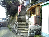 (左の道){右}白髭神社 興津東町1504 2つの東海道の分岐点から海岸寺経由の(左の道)を進むなら十字路を左折する。道なりに右にカーブしていくと2つに折れた神社名石柱と鳥居があり石段がある。祭神は猿田彦命。延宝3年(1675)に再建された記録がある。大正6年(1917)に川端山にあった天明年間(1781-89)尾張より勧請したとされる津島神社を合祀した。本殿両脇には脇障子として日本武尊の東国平定の図が彫られており左側は大蛇を払っている図になっている。燈籠、狛犬は昭和12年(1937)、鳥居は大正7年(1918)。 |