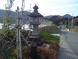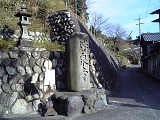 (右の道){左}秋葉山常夜燈 瑞泉寺経由の(右の道)を進むなら右折する。最近造成された広いまっすぐな道でしばらく歩くと文政2年(1819)の常夜燈がある。竿石の正面に秋葉山、左面に常夜燈、右面に「文政二年卯年十一月上浣日健之」と刻まれ火袋は新しくなっている。手前には平成12年建立の「長山平」と刻まれた黒石柱もある。旧道はそのすぐ先のバックミラーがある角を左折し細い道を道なりに行く。 |