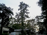 {右}宗像神社 松林 宗像神社境内の松の森は祭神が女神のため女体の森と称し駿河湾が霧に覆われてもこの森だけは浮かんでいるように見えたといいここを目標に舟人たちは船を進めた。境内右には巨木の松(樹齢450年以上樹高30m目通3.5m)もあり沖から見えると大漁とされ現在でも信仰の対象となっている。境内左には富三島幸水の松の短歌の看板もある。古くは境内も広く手前にある清水興津小学校(興津中町1478-10)校庭一帯も社地であり東海道沿いにも面していた。社殿右の石柱に囲まれた小祠は大祓人形特殊神事湯立の儀式の場で知らぬ間に犯した罪や穢れを祓い清め災いを取り除く神事で竹の葉を使用して熱湯を我が身に振りかける儀式。境内の右はずれには忠霊塔や忠魂碑がある。 |