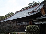 {右}清見寺 本殿大方丈 文政11年(1828)建立で十一面観世音菩薩坐像を安置する。正面に寛政2年(1790)琉球王子筆「永世孝亨」の扁額、両側に朝鮮通信使の詩文、明治33年(1900)室蘭から清水に向かい駿河湾で沈没した練習船月島丸の遭難者船長以下122人(うち学生79人)のうち109人の肖像額がある。家康は今川の人質時代に太原崇孚から教えを受けており裏に3畳程の家康手習いの間がある。裏には江戸初期に山本道斎が築庭したと伝えられる庭園があり家康は駿府城より虎石、亀石、牛石を移し柏樹を手植えした。拝観料300円。表には梅の古木「臥龍梅」があり家康が清見関所の庭の梅枝を取り接木したもので与謝野晶子が昭和12年来訪し詠んだ梅の歌の立札もある。大方丈右には潮音閣、庫裏、書院がある。 |
