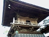{右}清見寺 鐘楼 大方丈の前の文久2年(1862)建立の鐘楼には正和3年(1314)鋳造の梵鐘(総高140.2cm鐘身高113cm口径80.7cm)があり天正18年(1590)秀吉の韮山城攻めで陣鐘として持ち出され傷がある。謡曲「三井寺」にも登場し人買にさらわれて行方不明になった浄見長者の一人娘を探す母親が近江の三井寺に辿り着いた際に梵鐘が鳴り「この寺の鐘の音は故郷清見寺の鐘を思い出させる」と呟くと偶然にも娘が寺に来ており故郷の名を言う者に気付き再会できた。鐘楼付近には昭和13年建立の高山樗牛の清見寺鐘声の文学碑、句碑「秋晴や 三保の 松原一文字」、山下清の「清見寺スケッチの思い出」の抜粋文立札、明治20年(1887)榎本武揚が揮毫建立の咸臨丸乗組員殉難碑「食人之食者死人之事」もある。 |