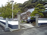 {左}坐漁荘(西園寺公望別荘) 興津清見寺町115 しばらく行くとある。別荘跡地に平成16年静岡市が忠実に建物を復元した。元の別荘は大正8年(1919)築で敷地1255.96平方m建物総面積460.27平方m、2階建の和風建築で昭和4年(1929)には座敷の横に洋間や洋式便所、テラスも増築された。昭和15年に没後、昭和46年主要部分が明治村(愛知県犬山市)に移築された。名称は子爵渡辺千冬が周の文王が呂尚(太公望)が坐漁している時に出会い軍師とした故事に因み太公望を公望の名に、坐漁を前庭を隔てて清見潟を見渡す景勝地に、天皇補佐の地位を軍師呂尚に見立て命名した。平日10:00-17:00土日祝日9:30-17:30月休、無料。玄関前には昭和46年建立の住友銀行頭取堀田庄三揮毫、東京大学名誉教授岡義武撰文の坐漁荘址碑もある。 |