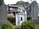 {左・寄}井上馨の像 波多打川が左に沿いはじめるところを左折し少し行くと左に説明板があり公園に入ってすぐに2つの石碑に囲まれ坐像がある。長州出身で維新後に初代外務大臣や農商務、内務、大蔵大臣を歴任した井上馨が76歳の明治43年(1910)ここより北西にあった別荘(長者荘)に高さ5m重さ8tの立像と2つの石碑が建てられた。立像は戦争で供出し別荘は昭和20年空襲で焼失し石碑は別の場所に放置されていたが井上家から立像と同作者による坐像を譲り受け石碑とともに昭和53年ここに設置された。坐像台座の「井上馨候之像」は清水市長稲名嘉男の書。左の碑は渋沢栄一、右の碑は杉孫七郎(聴雨)の碑文による。大昔に清見長者の屋敷があったという米糠山の長者荘の敷地は5万坪あったと言われる。 |